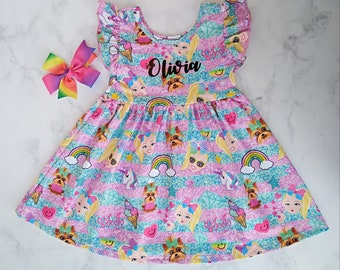 Item # 8002 bin# c# brand nickelodeon jojo siwa long sleeve knit dress & free gift unicorn and heart print new with tags color pink purple size xs 4/5 .